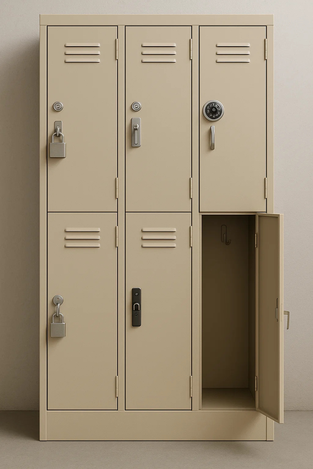 Kľúčové zámky: Tradičné fyzické klávesy jedinečné pre každú skrinku.